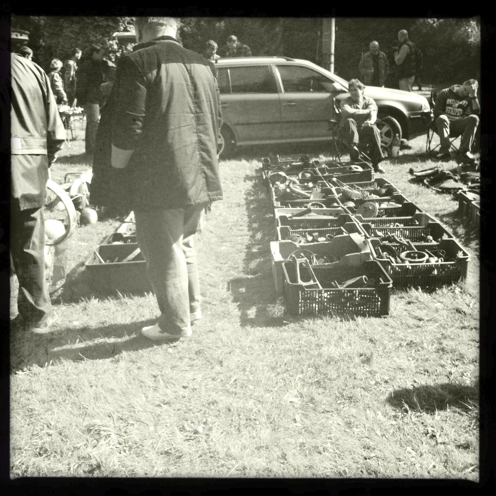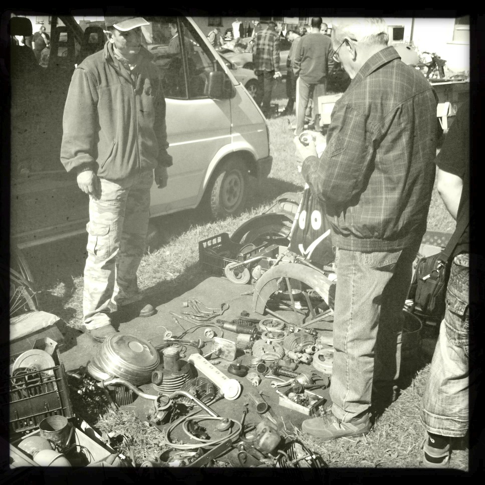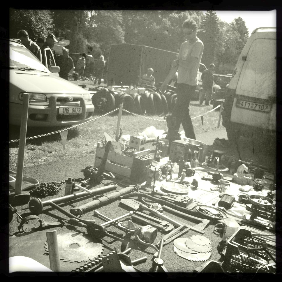 Nabyl jsem proto dojmu, že jak prodávající, tak kupující by si koupí čehokoliv za jakoukoliv cenu vyrobil doživotní frustraci, že jej dnes druhá strana „očůrala“ a dehonestovala. Když ovšem přijdou večer domů jeden s plným autem zboží ve stavu nezměněném a druhý s plnou peněženkou mínus sto kaček za vstupné, párek a pivo, jsou spokojeni, protože nepodlehli nástrahám toho zlého světa kolem. Prodávající se může i nadále chlubit kolik náhradních dílů na čezety a škodofky ve sklepě má a svou sbírku vystavit na podzim zas. Jedině takové vysvětlení by mi bylo pochopitelné.