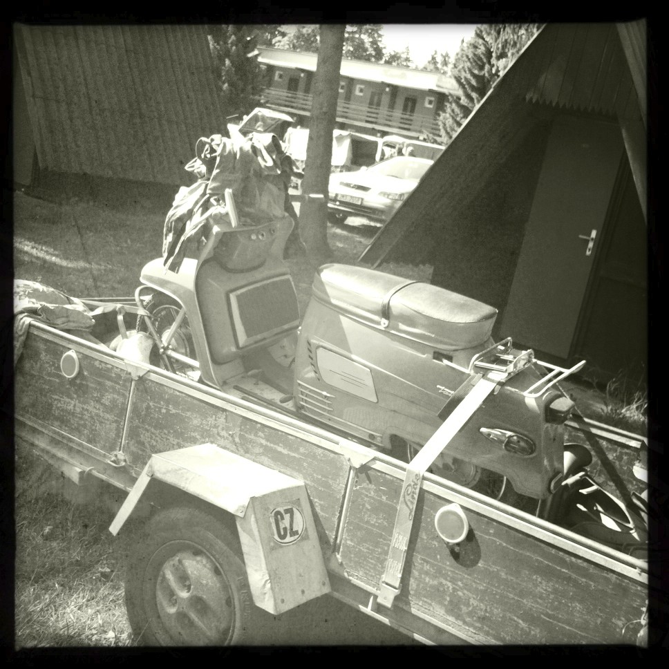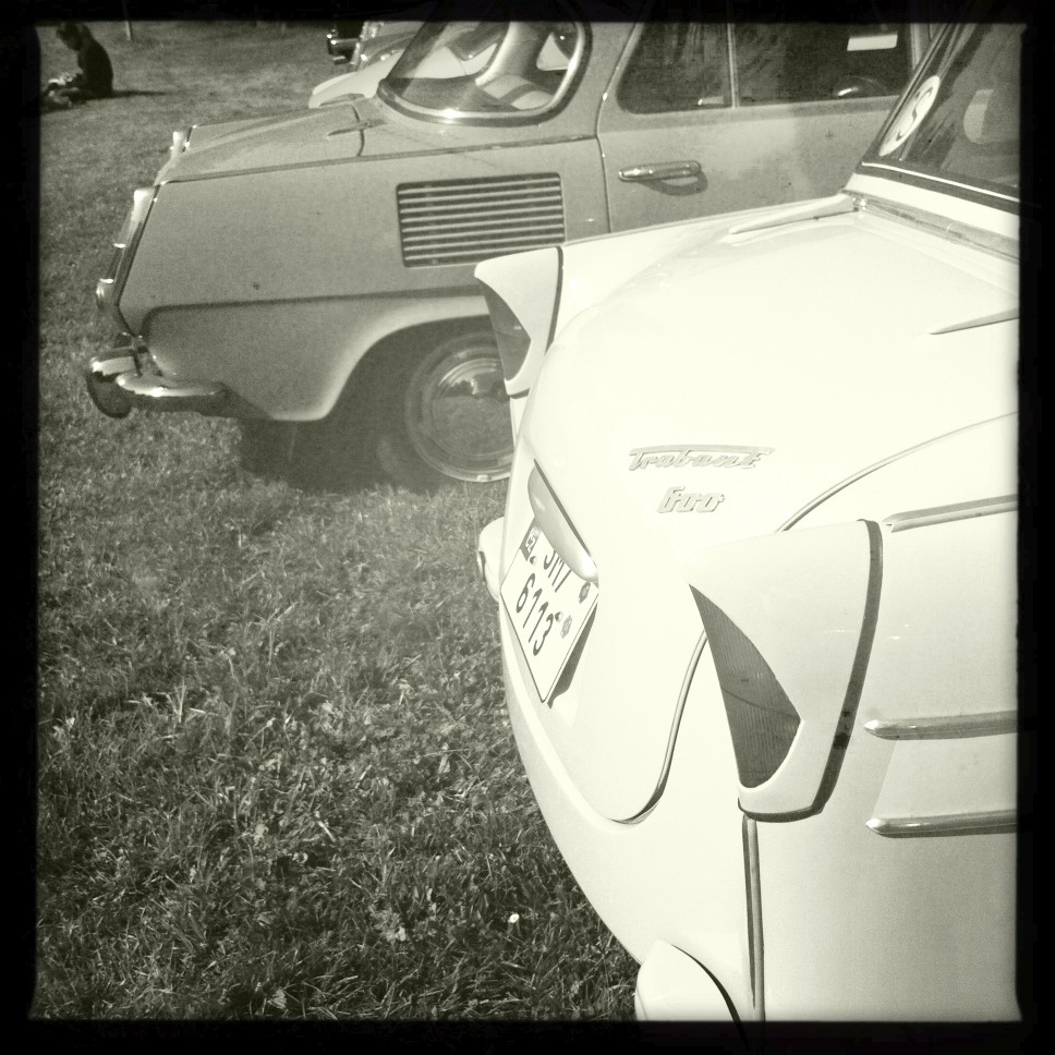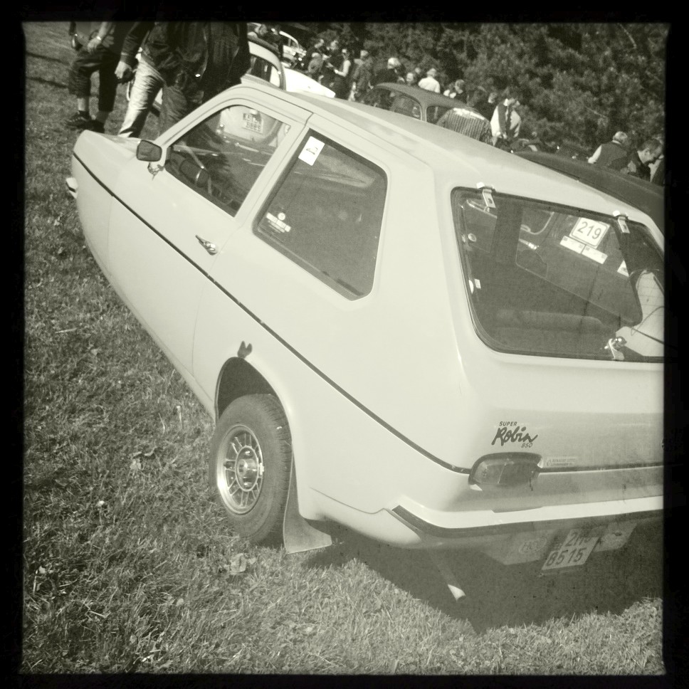 Někdy kolem 10. se začala přilehlými silnicemi linout šňůra Wartburgů, Volv, Volh, Fordů, Fordů, Fordů, Citroenů, Alf (slovy dvě, cha!), Felicií, (snad) Spartaků, Mercedesů, jeden dlooooouhý Cadilac, co by vydal za šňůru i sám a tak dále a tak dále (už jste byli na těch klubových stránkách?). Zastávky kromě čurání jsme dělali samozřejmě při plnění úkolů, ty ale byly spíše pro zábavu a potěšení, než abychom si ukazovali kdo čurá výše. Jeden za všechny – po hmatu jsme v pytli měli poznat předměty. V tom mém byl napínák na alternátor (ten jsem nepoznal, do té doby jsem si jej nikdy nevšiml) a umělá vagína (tu jsem poznal!!!!) Fajn byly také kuželky s pneumatikama. Zde jsem opět nezářil, přestože jsem se důkladně připravoval kritickým okukováním stylu a techniky těch přede mnou. Zřejmě jsem je smíchal dohromady.