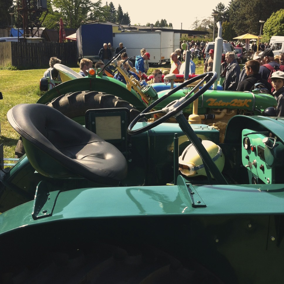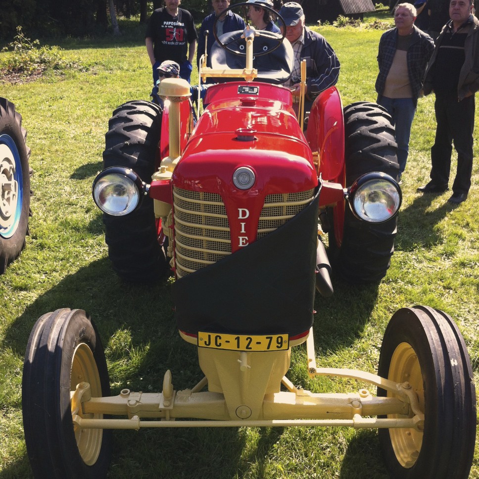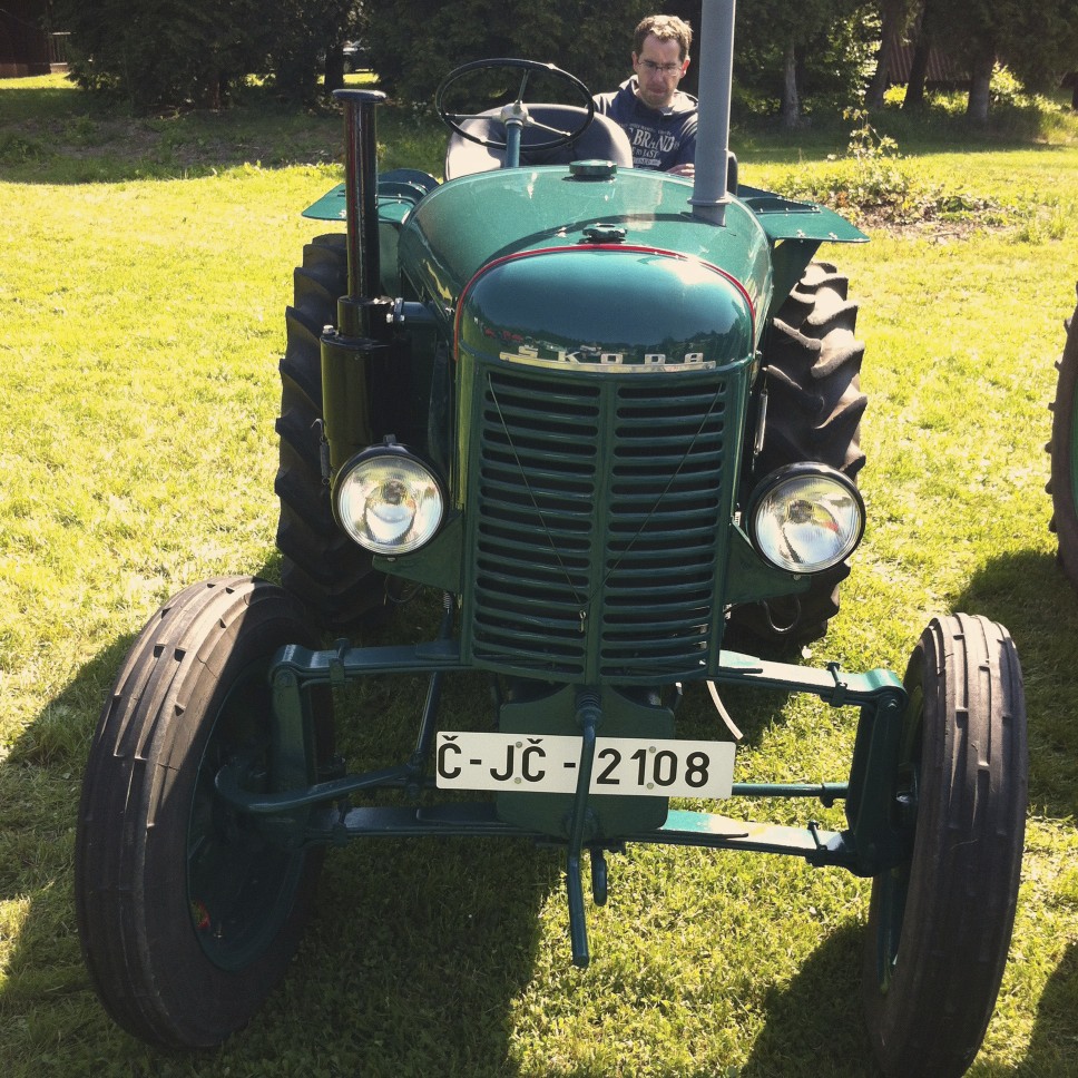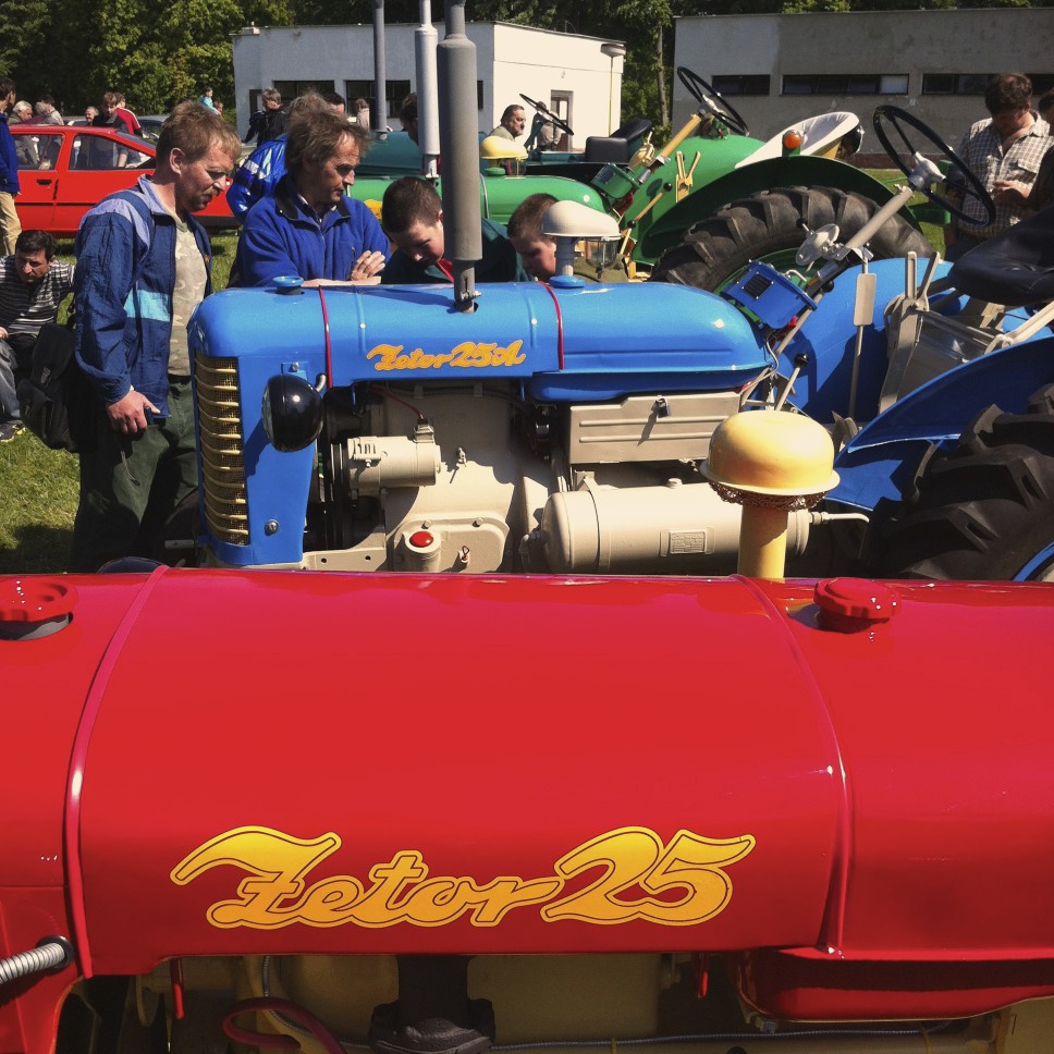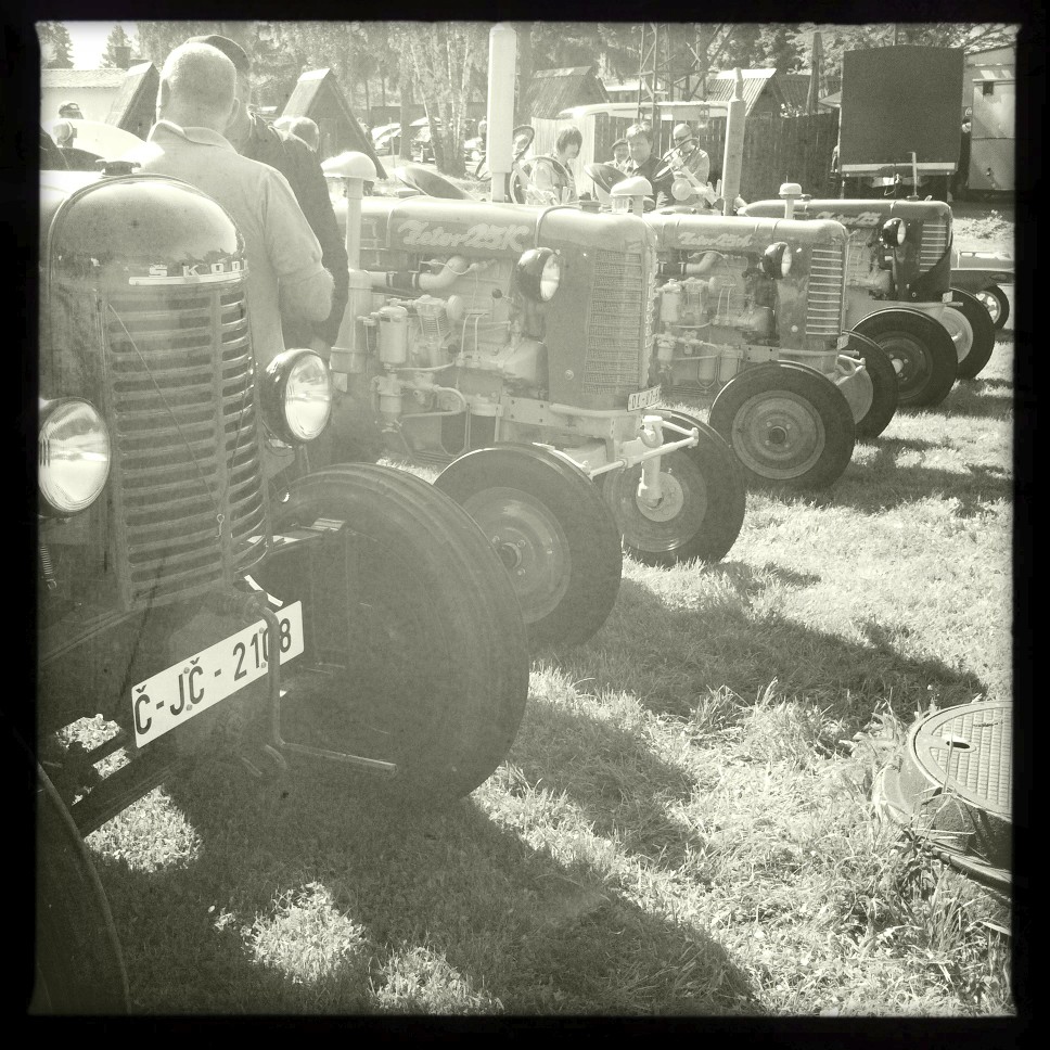 Roztomilým na druhé straně shledal jsem neformální mini sraz veteránů vrámci burzy, za jehož největší bonbón považuji čtyři zrenovované traktory Zetor a Škoda ve stavu 1A. S majitelem a zároveň renovátorem jsem se seznámil a těším se, až mi bude vyprávět jejich příběhy. Je to ten pán vpravo na fotce v dolním pravém rohu. Nelze nezmínit, že on i ostatní řidiči přijeli oblečeni stylově v čistých a nažehlených montérkách, nové pracovní boty odrážely paprsky dopoledního slunce jako ty čerstvě nablýskané kapoty ocelových ořů.