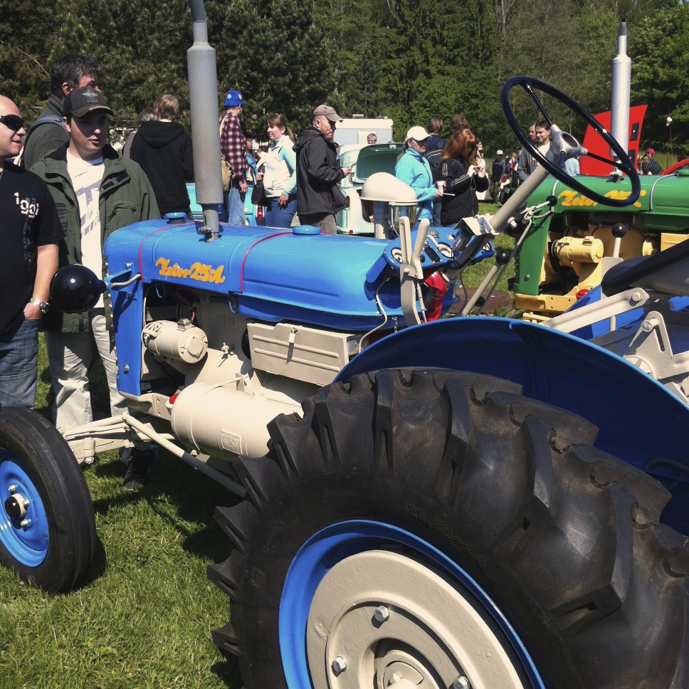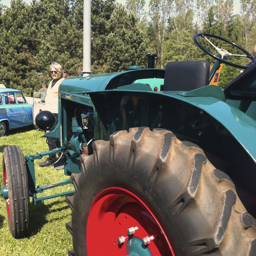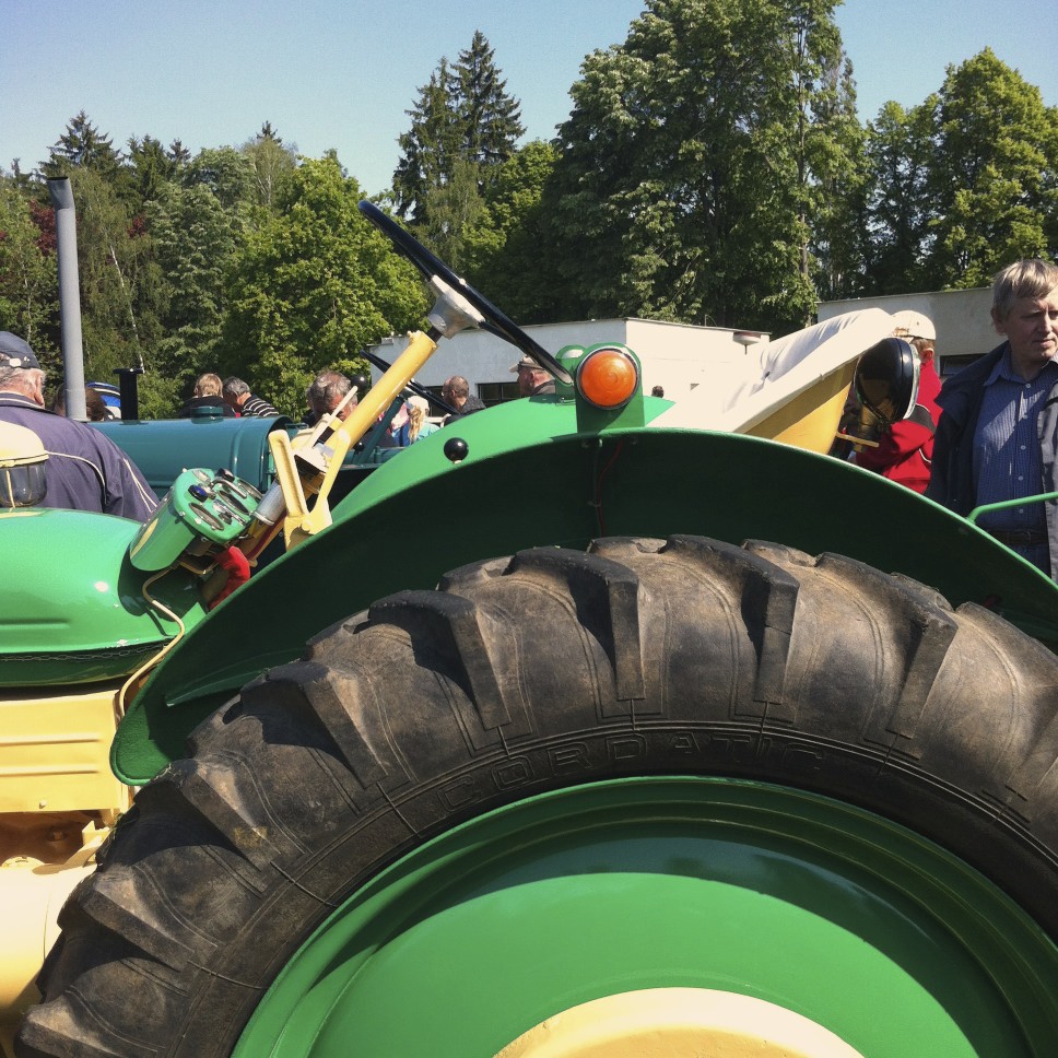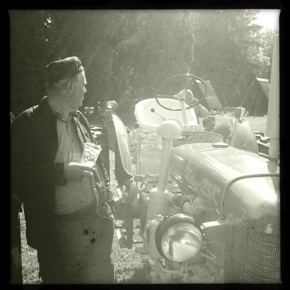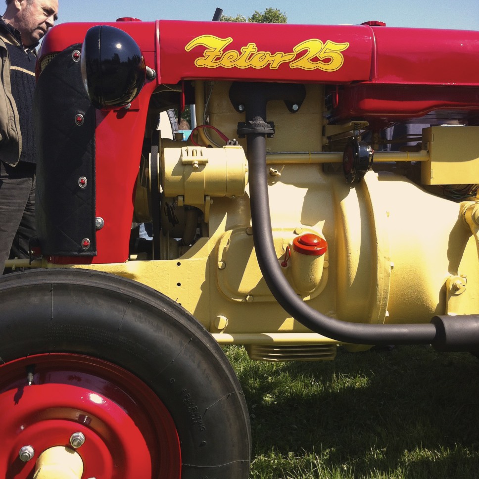 Roztomilým na druhé straně shledal jsem neformální mini sraz veteránů vrámci burzy, za jehož největší bonbón považuji čtyři zrenovované traktory Zetor a Škoda ve stavu 1A. S majitelem a zároveň renovátorem jsem se seznámil a těším se, až mi bude vyprávět jejich příběhy. Je to ten pán vpravo na fotce v dolním pravém rohu. Nelze nezmínit, že on i ostatní řidiči přijeli oblečeni stylově v čistých a nažehlených montérkách, nové pracovní boty odrážely paprsky dopoledního slunce jako ty čerstvě nablýskané kapoty ocelových ořů.