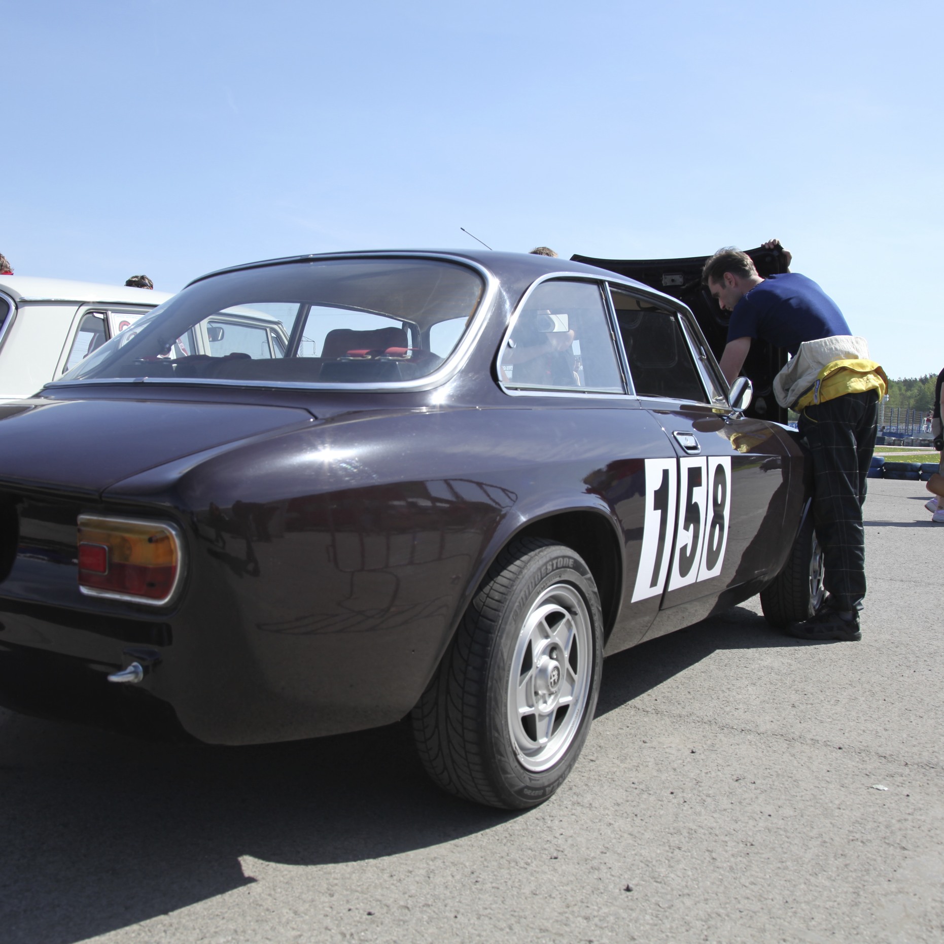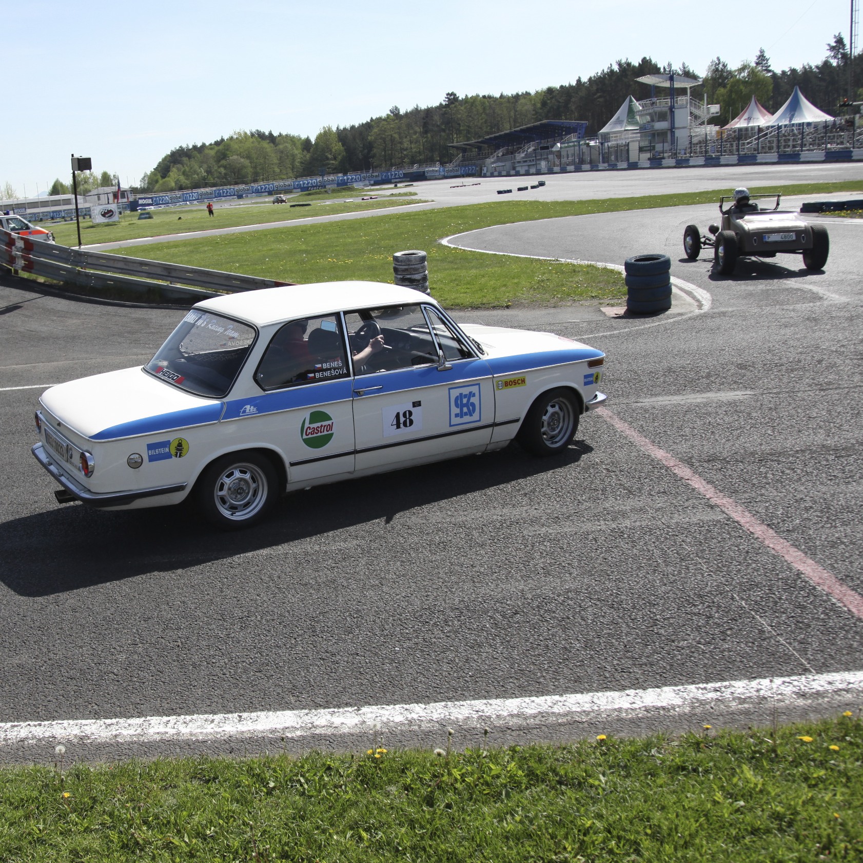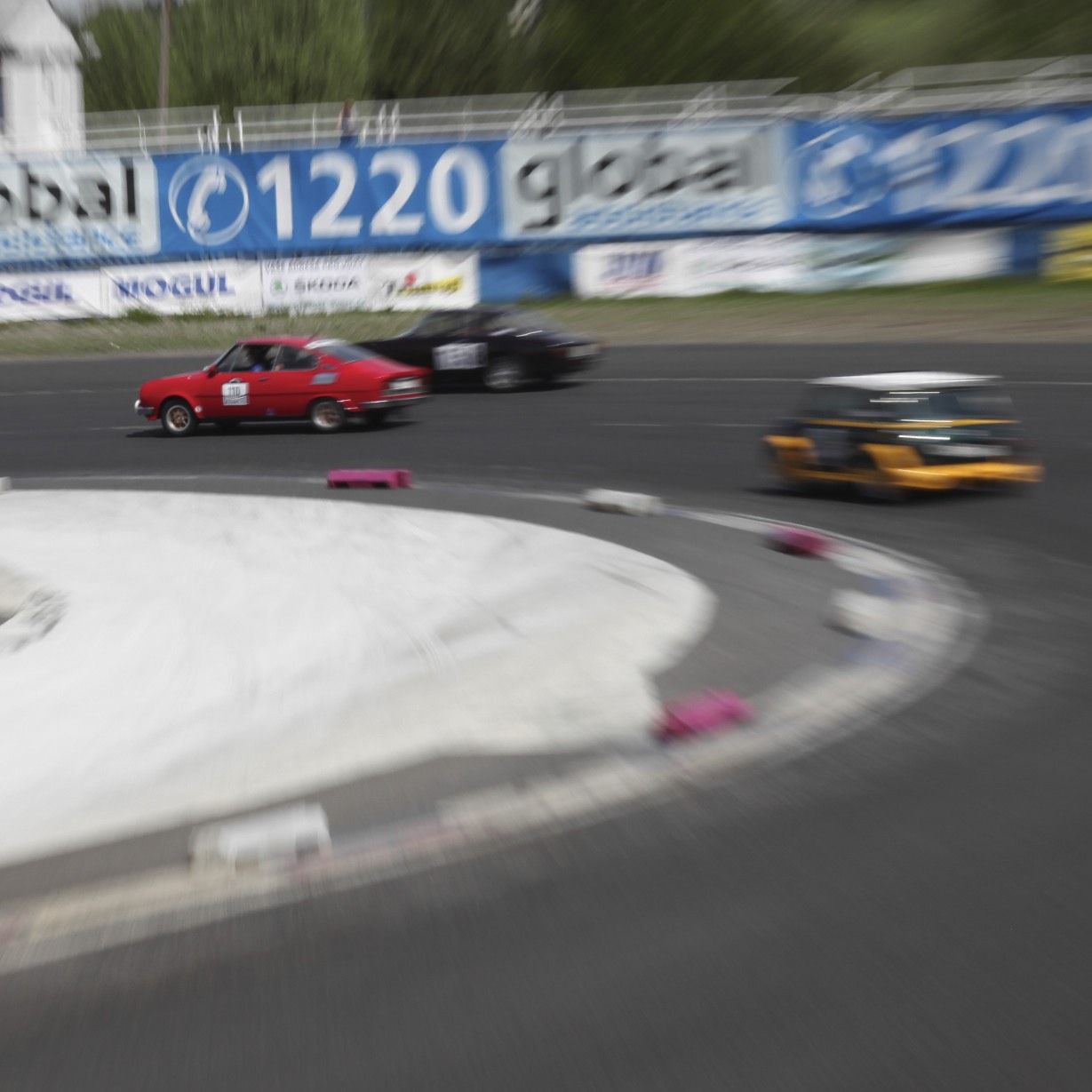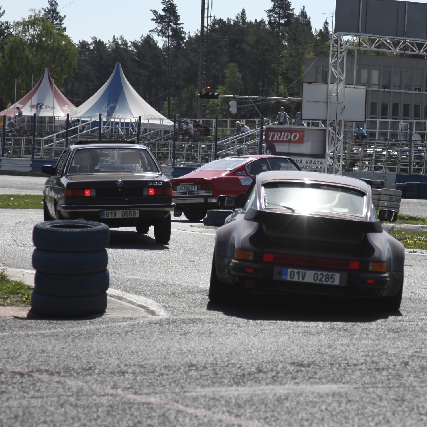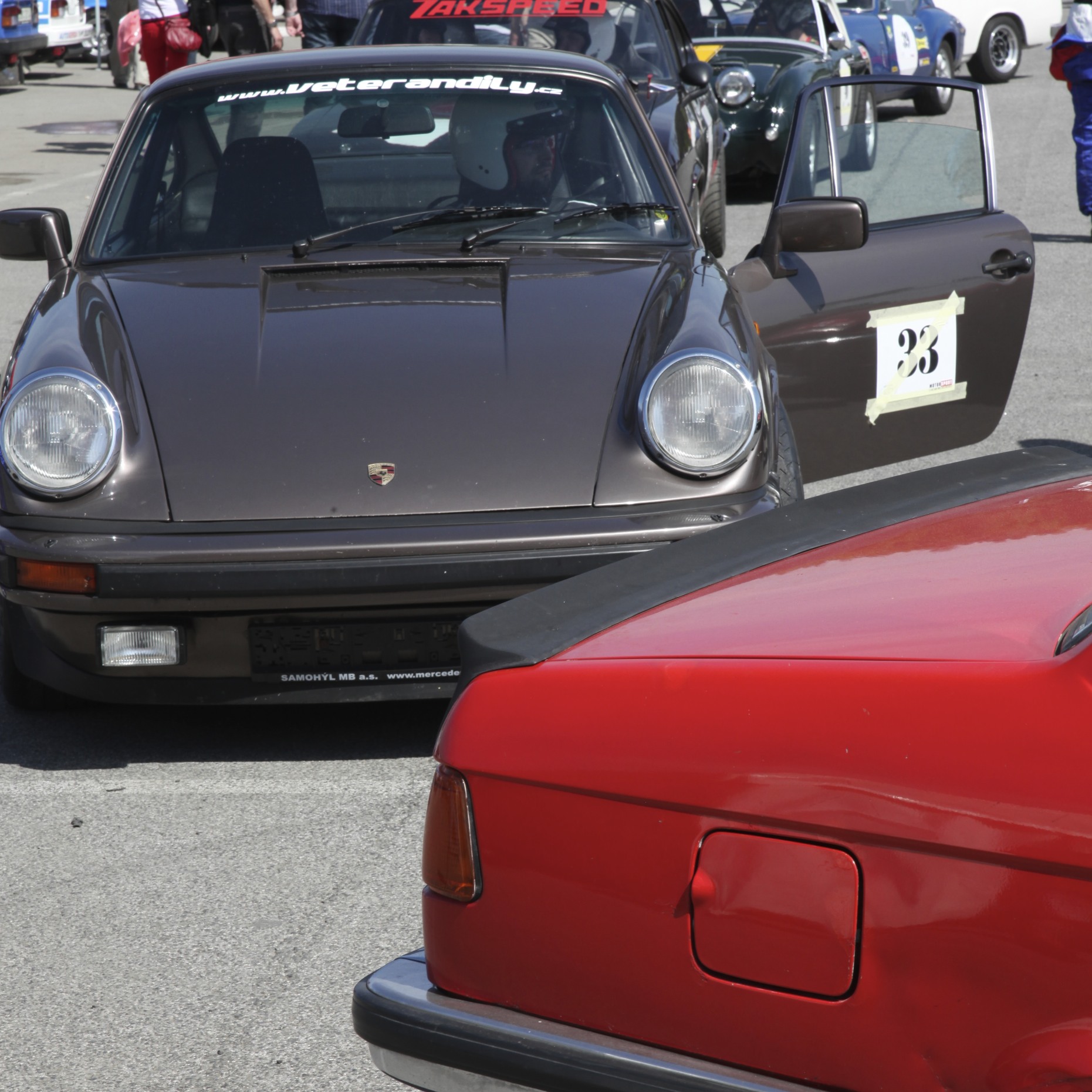 Nedávno, z hlediska konce poslední doby ledové, ovšem pradávno z pohledu novináře zveřejnil jsem v jiném příspěvku pár fotografií pořízených iPhonem z úžasných závodů veteránů na autodromu v Sosnové pořádaných Classic Car Clubem. Také jsem zde učinil slib, že přidám další fotky, pořízené „normální-pořádnou-mašinou-s obrovským-objektivem-pro-normální-pořádné-fotky“. Co mi můj tříletý Hubert dovolil, to jsem pofotil. Pokud zavelel „TAM“, znamenalo to, že se mu místo nebo auto nelíbí. že pro záběr existuje jistě nějaké lepší místo, anebo že slunce vrhá na objekty nesprávné světlo. Nelze než poslechnout. Doufám, že výběr fotek pod jeho režií a jeho 20 kily na mém krku bude dle vašeho gusta