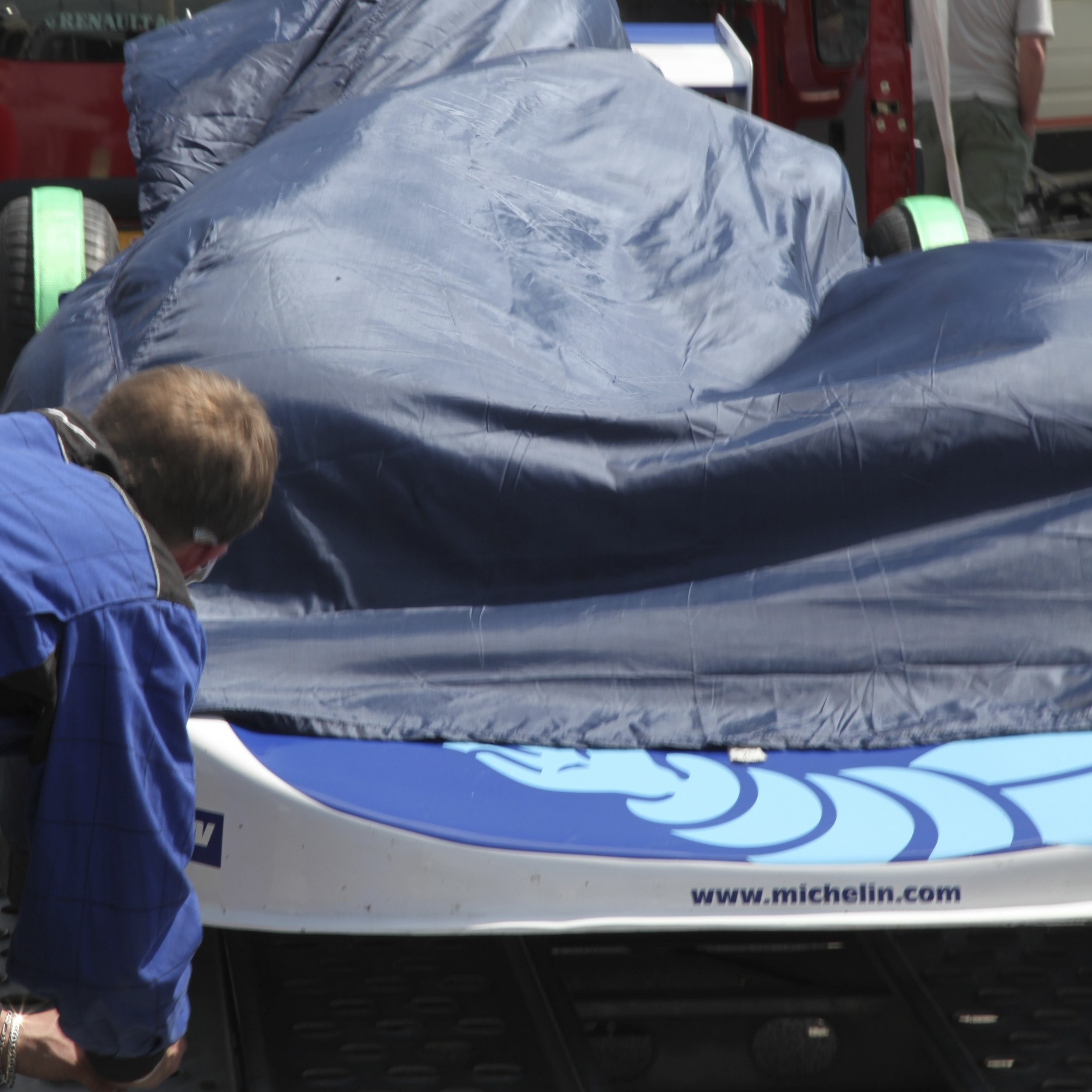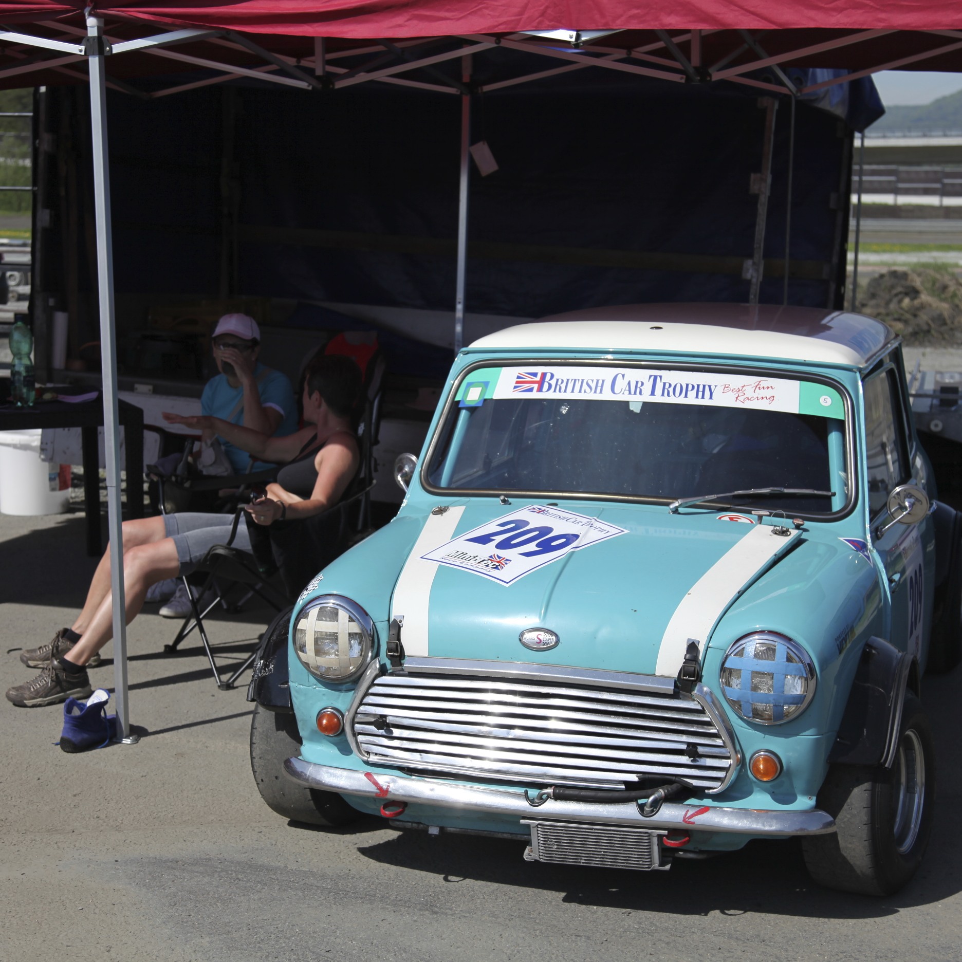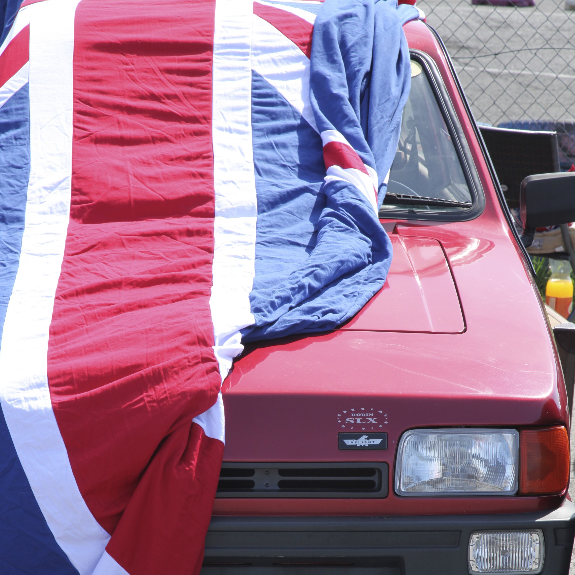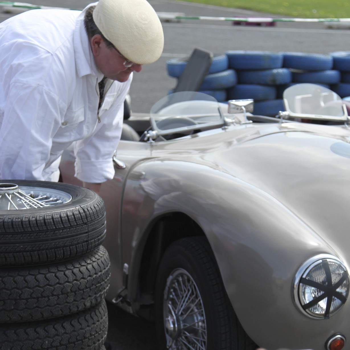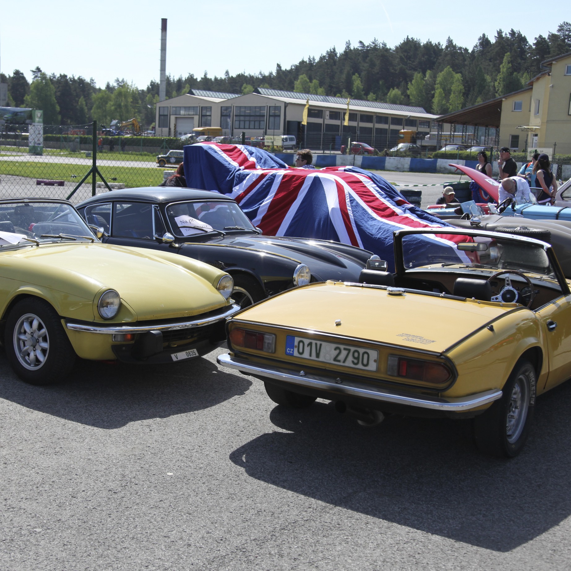 S tímhle pánem bych se rád ještě viděl. Měl vedle svého závodního oře pod Union Jackem přikrytého Relianta. Prý jich má víc. Závodil s Triumphem Marlet Special